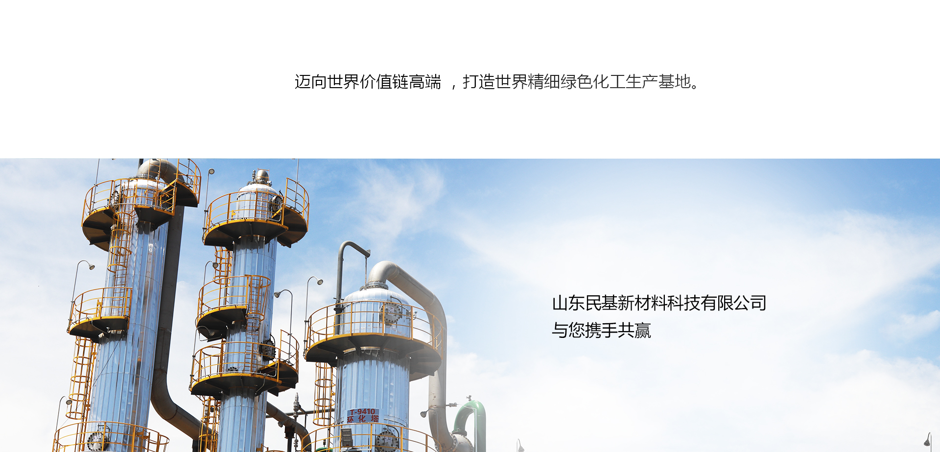 山東民基新材料科技有限公司成立于2008年5月,占地面積20萬平方米,注冊資本1.1億元,是山東省高新技術(shù)企業(yè)、山東省雙體系標(biāo)桿企業(yè)、山東省氯乙酸行業(yè)安全操作規(guī)程起草單位、山東省瞪羚企業(yè)、山東省“專精特新”中小企業(yè)、山東省“中小企業(yè)隱形冠軍”,獲山東省“富民興魯勞動獎狀”、“振興淄博勞動獎狀”、“淄博市勞動關(guān)系和諧企業(yè)”、“淄博市示范誠信企業(yè)”等榮譽(yù)20余項。擁有省級和市級“一企一技術(shù)”研發(fā)中心、淄博市工程研究中心,已申報、擁有專利30余項。 公司主要產(chǎn)品:氯乙酸、環(huán)氧氯丙烷、三甲基乙酸、三甲基乙酰氯、氯代特戊酰氯、濃硫酸、發(fā)煙硫酸、液體二氧化硫等,組成了“氯乙酸—環(huán)氧氯丙烷”、“三甲基乙酸—三甲基乙酰氯—氯代特戊酰氯”兩條綠色循環(huán)產(chǎn)品鏈,其中氯乙酸單套裝置產(chǎn)能全球第一。產(chǎn)品廣泛用于醫(yī)藥、農(nóng)藥、染料、膠粘劑等行業(yè),深受國內(nèi)外市場青睞。公司擁有自營出口權(quán),通過了三體系認(rèn)證,獲頒歐盟3A信用評估證書、國內(nèi)3A級信用企業(yè)證書。 建基筑業(yè)十余年,公司始終踐行“創(chuàng)新驅(qū)動、高端智能、高質(zhì)高效、綠色循環(huán)”發(fā)展理念,集中資源,定向發(fā)力,堅守主業(yè),聚焦項目,聚力創(chuàng)新,致力于研發(fā)構(gòu)建“投入-產(chǎn)出-資源循環(huán)利用”的安全環(huán)保綠色制造體系,打造了新舊動能轉(zhuǎn)換的“民基樣板”。